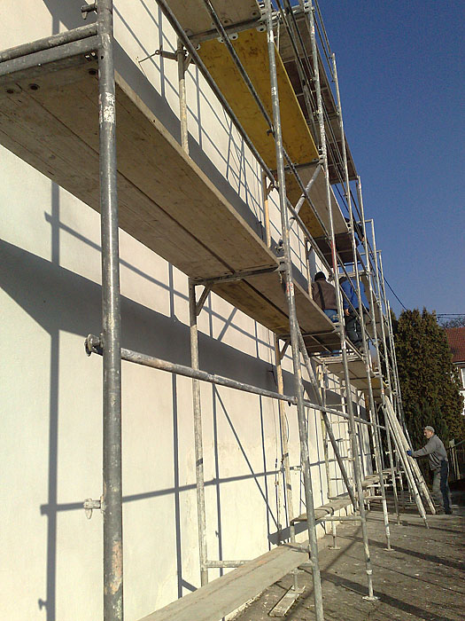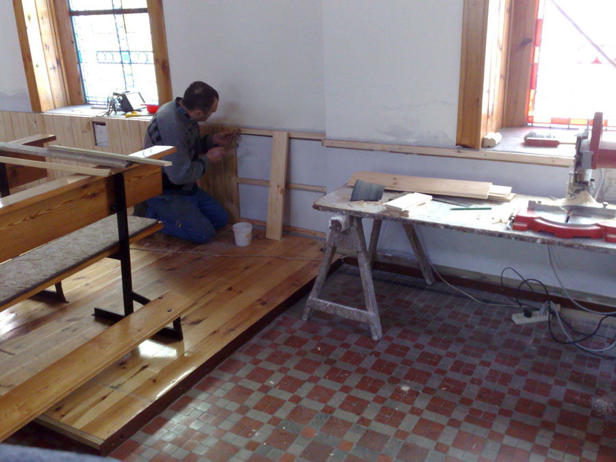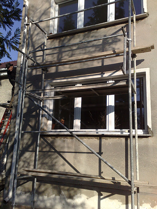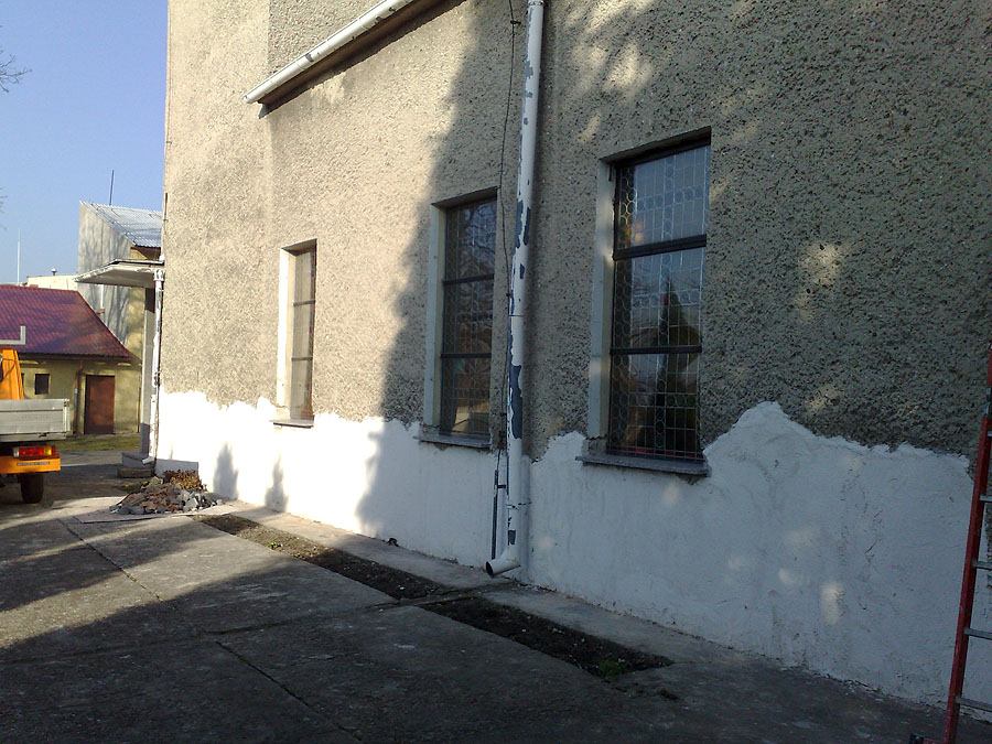 W ostatnich tygodniach zostały wymienione wszystkie parapety okien świątyni w ilości 38 sztuk oraz wypiaskowano ściany prezbiterium, by ściągnąć starą farbę. To ułatwi „oddychanie” ściany, a w przyszłości nałożenie nowej struktury „barankowej” tynku. Odtworzyliśmy również stary, rozpadający się komin. Pozostałe prace przy elewacji rozpoczną się na jesień przyszłego roku.
