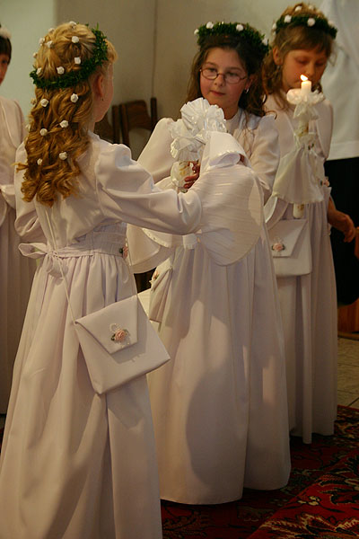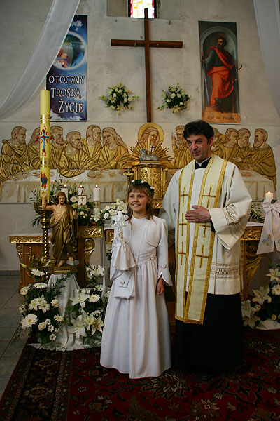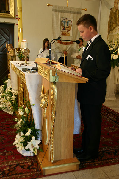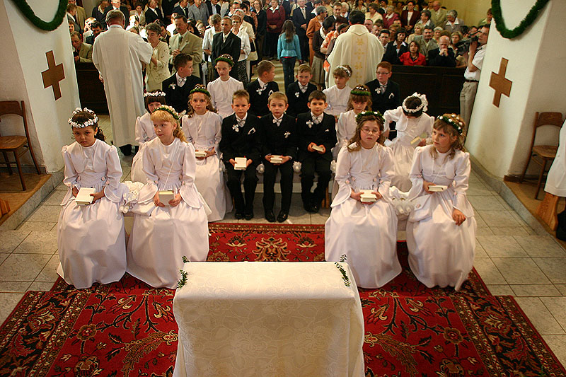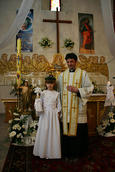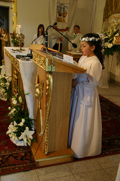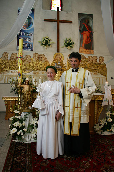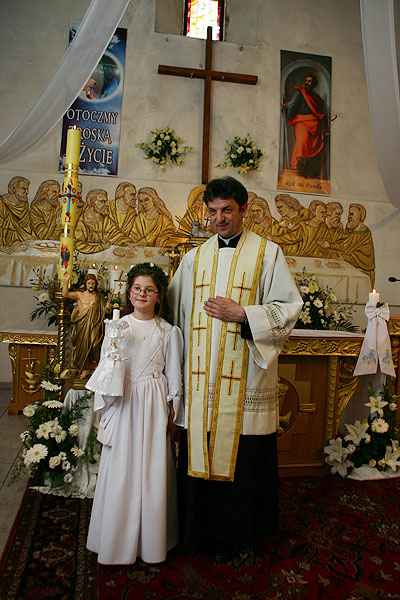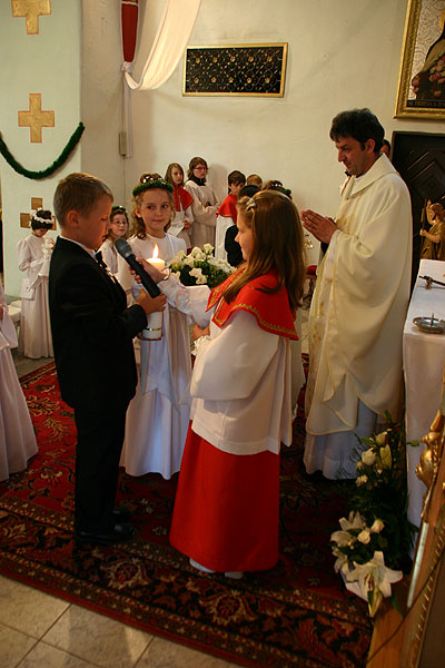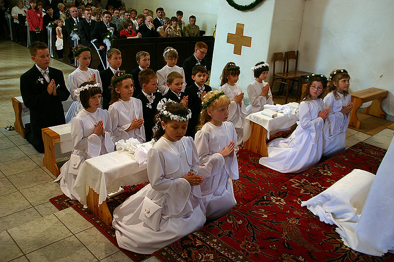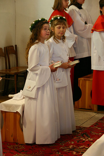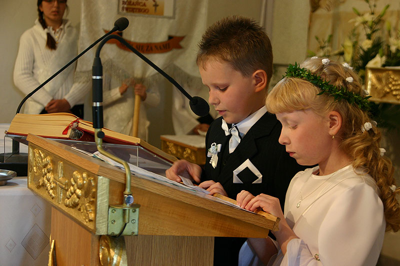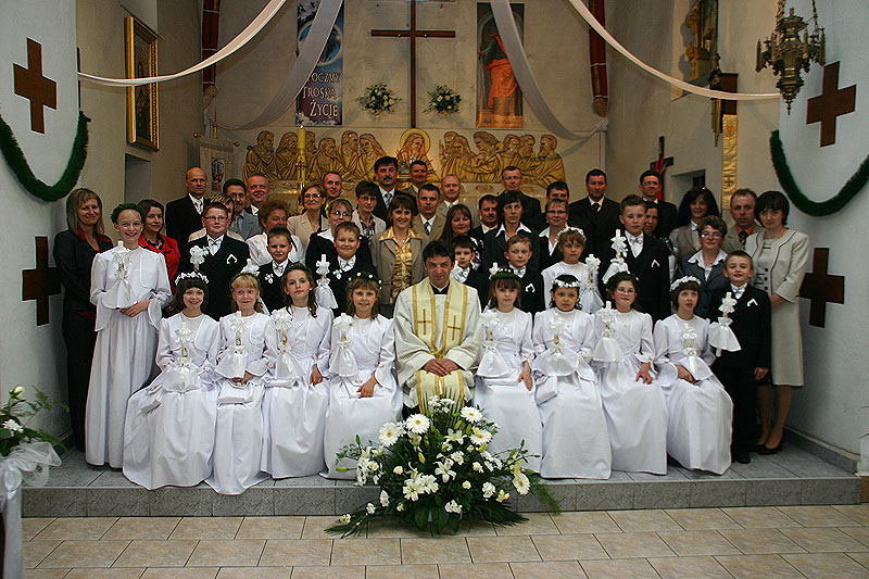 4 maja 2009 r., o godz. 10.30, w naszej parafii obchodziliśmy uroczystość przystąpienia dzieci do I Komunii Świętej. W tym roku sakrament pokuty i Eucharystii po raz pierwszy przyjęło 17 dzieci (10 dziewczynek i 7 chłopców). Tydzień wcześniej – 26 kwietnia – 14 dzieci obchodziło swoją rocznicę I Komunii Świętej.