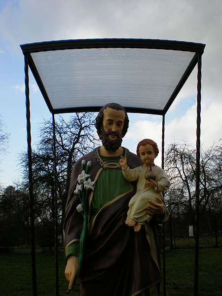 Tuż obok groty Matki Bożej Lurdzkiej w ogrodzie plebanijnym stoi Święty Patron Lichyni. Jednocześnie nasz wspólny patron, bo opiekuje się rzemieślnikami, których w Zalesiu Śląskim i Popicach też nie brakuje. Jest także patronem dobrej śmierci. W prawym ręku trzyma białą lilię, symbol niewinności i czystości, zaś w lewym ręku Dzieciątko Jezus z kulą ziemską i krzyżem, przez który zbawia świat. Wspomnienie św. Józefa Oblubieńca NMP obchodzimy 19 marca, zaś wsp. Świętego jako robotnika – 1 maja. Wtedy też parafianie z Lichyni obchodzą swój odpust.