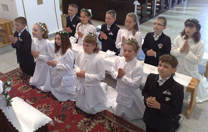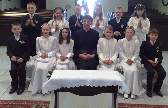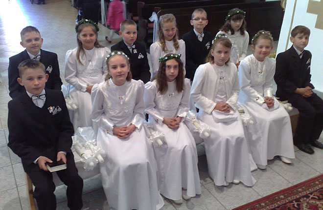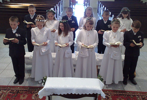 8 maja – w niedzielę – o godz. 10.30 rozpoczęliśmy świętowanie rocznicy przyjęcia I – wszej Komunii Świętej przez naszych młodych parafian ( klasa IV – 12 apostołów 🙂 ). Większość funkcji liturgicznych przejęły dzieci. Wywiązały się z nich bardzo dobrze. Atmosfera była pobożna i radosna. Na zakończenie Mszy św. dzieci złożyły swoje podziękowania Panu Bogu, rodzicom i ks. Proboszczowi za błogosławieństwo i trud włożony w ich dobre wychowanie.