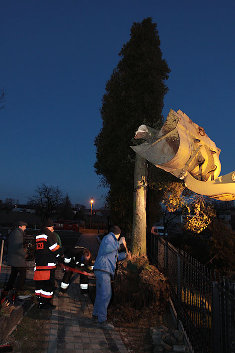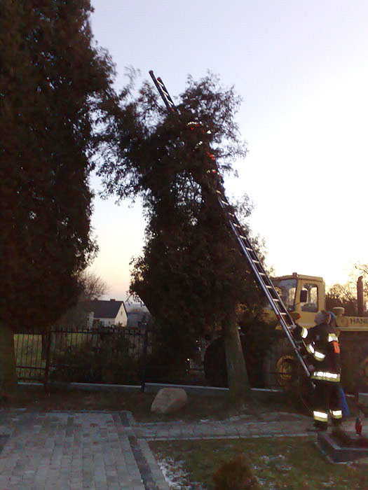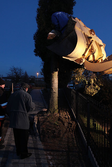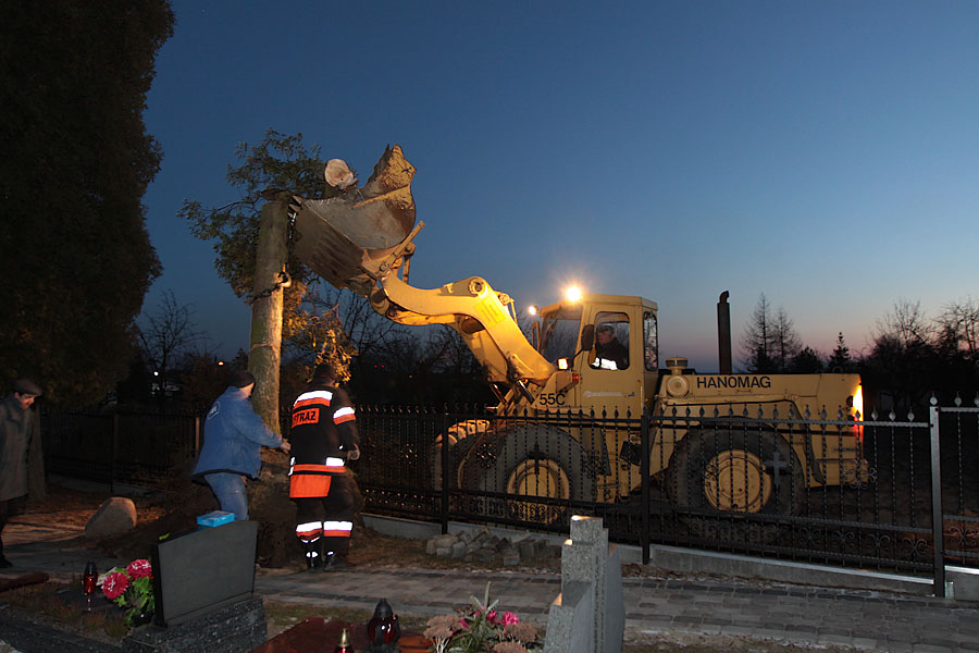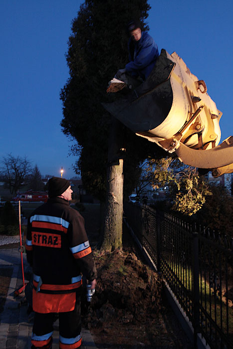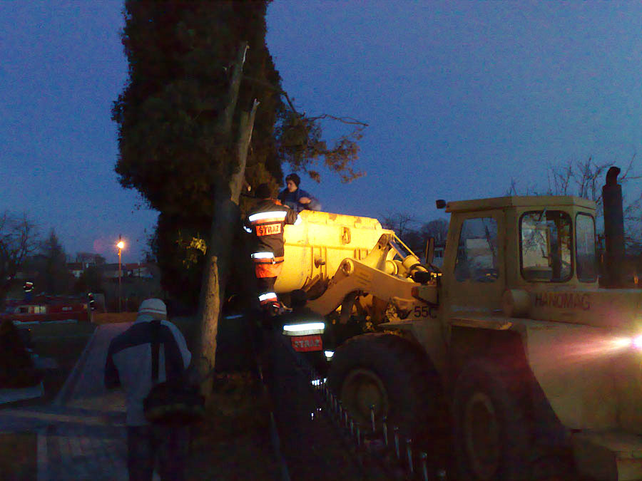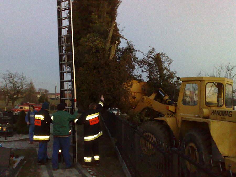 12 lutego br. po godz. 15.00 ks. Proboszcz zwrócił się do władz naszej gminy o pozwolenie na szybkie usunięcie drzewa, które w wyniku silnego wiatru z piątku na sobotę zaczęło się pochylać i zagrażać nowemu ogrodzeniu cmentarza oraz sąsiadującym nagrobkom. Po uzyskaniu pozwolenia Ksiądz poprosił naszych strażaków o usunięcie drzewa. Strażacy OSP w Zalesiu Śląskim szybko i sprawnie zajęli się problemem. Bóg zapłać!